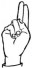 На ћирилици написано ЛАНА БИБЕР састоји се из 9 слова [?]. Исписано ћириличном једноручном азбуком за глувонеме: